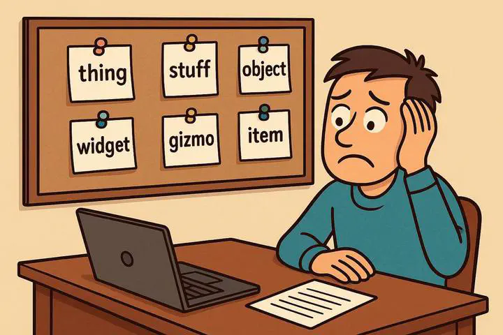 So if changing the name of something is difficult and if naming things correctly now is hard, (and predicting how they may evolve is nearly impossible,) then maybe the best thing we can do is to purposely give them an obscure name.