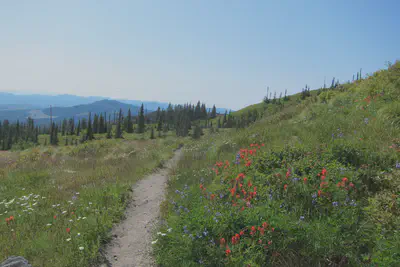 We now had to backtrack the two miles back to the Summit Route. This was mostly uphill and because of the rain we were getting soaked every time we brushed up against the plants on the sides of the trail.