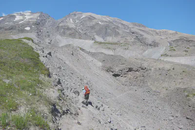 The first challenge was figuring out where to enter the Loowit trail and which direction to hike (clockwise or counter clockwise). Since there is only one trail up to the summit and our passes were for Aug 2nd we had a hard requirement of being near Monitor Ridge on the night of Aug 1st. Initially we thought we would enter at Sheep Canyon trailhead and hike clockwise on the trail. This would put us around Windy Pass on the first night and close to June Lake on the second night. (In retrospect this was probably not a great plan as Windy Pass isn’t named ironically. It is windy as hell and camping there would have been a trick.) However, the night before we were planning on leaving we realized the trailhead we were going to use had been washed out and we had to scramble to come up with a new plan.